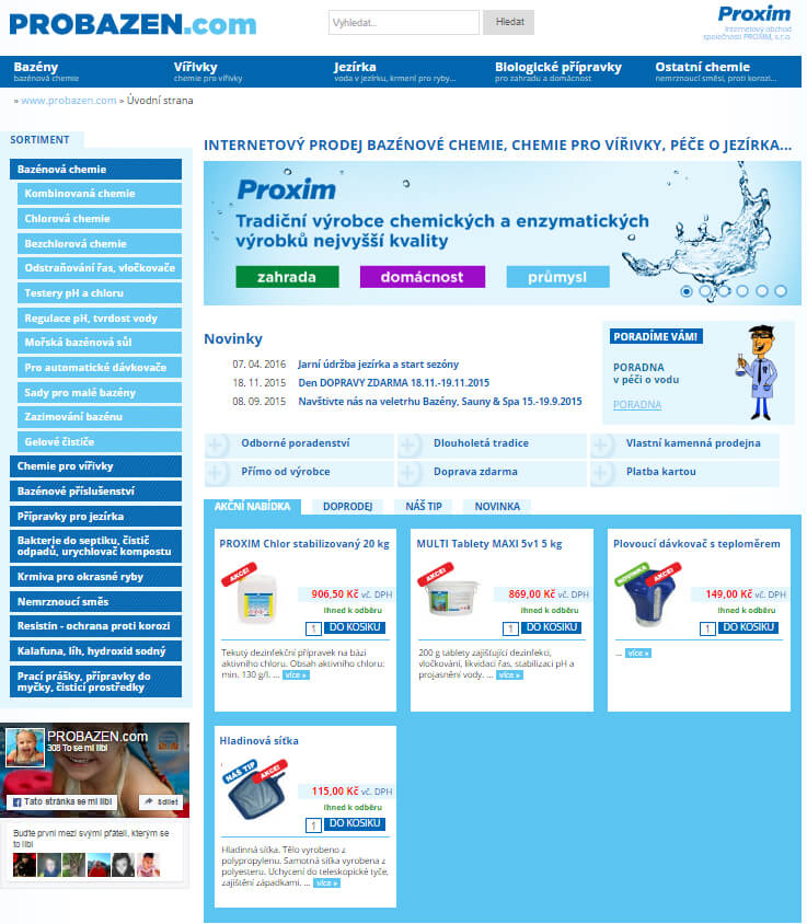 Internetový prodej výrobků firmy PROXIM naleznete na adrese www.probazen.com.