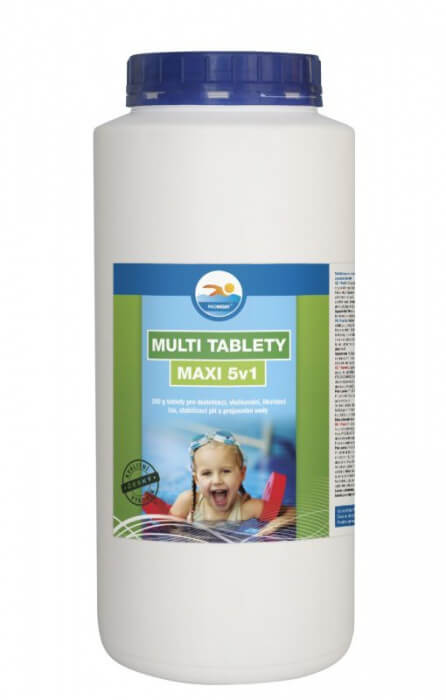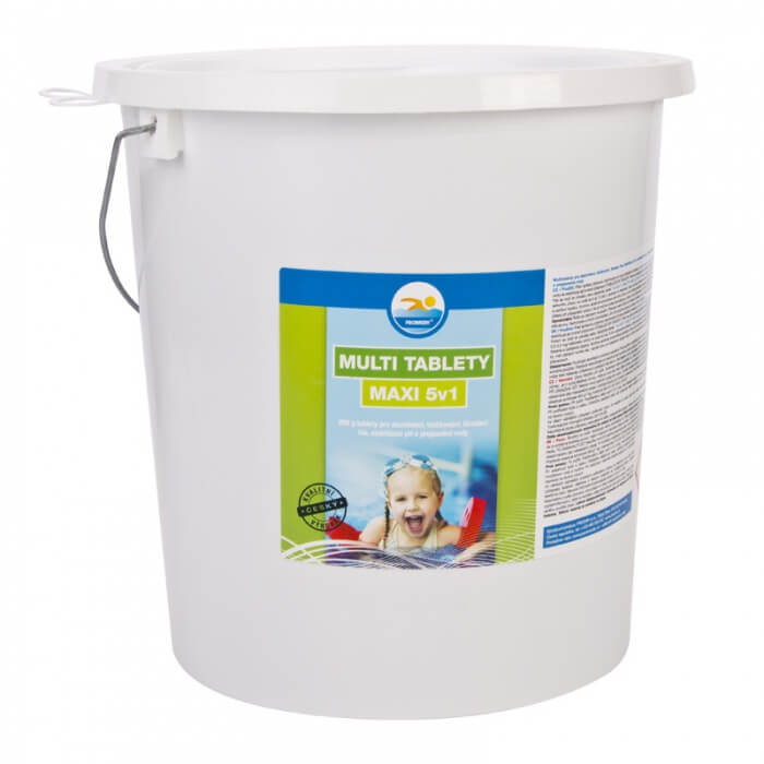 Dávkování: Pro 20-30 m3 vody v bazénu se používá 1 tableta. Toto množství postačuje pro udržení potřebné koncentrace (tj. 0,3-0,5 mg/l) volného chloru ve vodě na 5 až 10 dnů v závislosti na faktorech, které ovlivňují množství volného chloru ve vodě, jako je teplota vzduchu a vody, intenzita slunečního záření, zatížení bazénu atd. Varování. Zdraví škodlivý při požití. Způsobuje vážné podráždění očí. Může způsobit podráždění dýchacích cest. Vysoce toxický pro vodní organismy, s dlouhodobými účinky. Je-li nutná lékařská pomoc, mějte po ruce obal nebo štítek výrobku. Uchovávejte mimo dosah dětí. Zamezte vdechování prachu. Zabraňte uvolnění do životního prostředí. PŘI ZASAŽENÍ OČÍ: Několik minut opatrně vyplachujte vodou. Vyjměte kontaktní čočky, jsou-li nasazeny a pokud je lze vyjmout snadno. Pokračujte ve vyplachování. Odstraňte obsah/obal jako nebezpečný odpad. Uvolňuje toxický plyn při styku s kyselinami. Pozor! Nepoužívejte společně s jinými výrobky. Může uvolňovat nebezpečné plyny (chlor).
