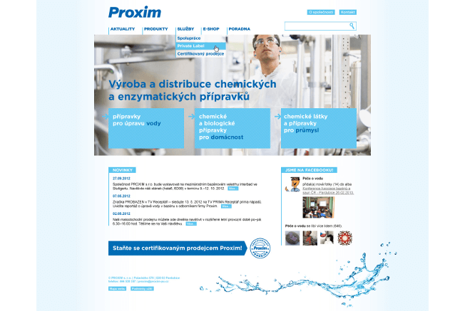 Od května tohoto roku jsou spuštěny nové firemní stránky, které lépe odpovídají firemní identitě a poslání společnosti, více informují a komunikují s odběrateli, zákazníky a potencionálními obchodními partnery. V případě, že byste chtěli ohodnotit, nebo sdělit svůj názor na nové stránky, budeme rádi. Váš Proxim.